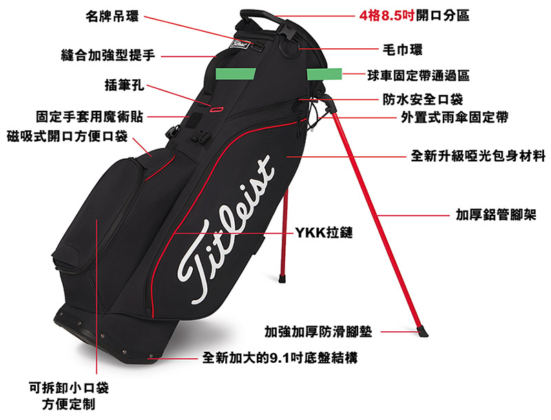 Titleist Hybrid 14 Stand Bag #TB25SX14A-006 ,黑/紅