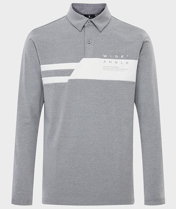WIDEANGLE 男長袖撞色邊飾 POLO 衫 #WMU25231-MK ,彩灰