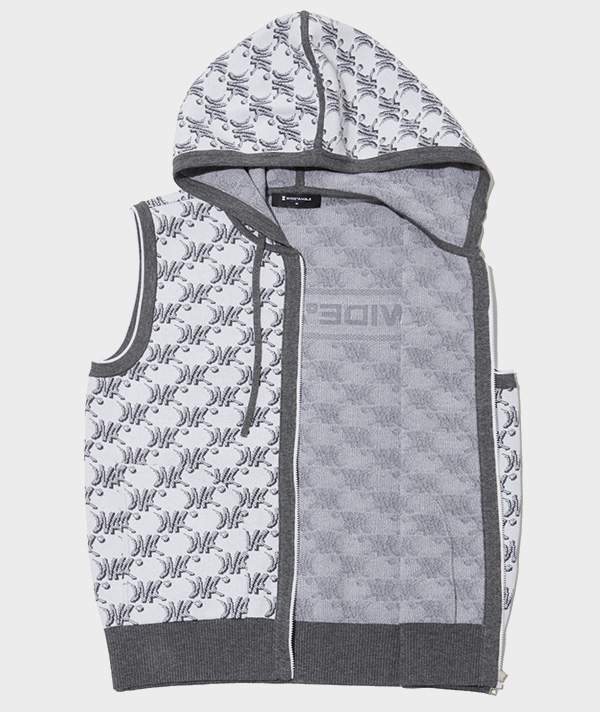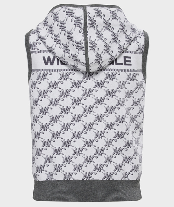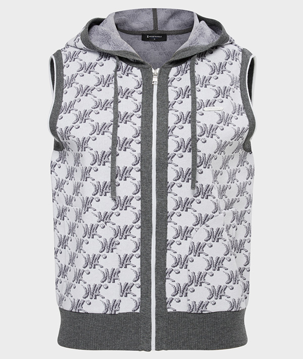 採用全版季節限定圖紋設計的連帽全開襟針織背心。