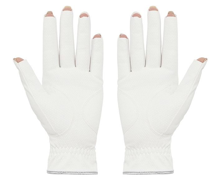● 特色: 手背採用UPF50+材質,指間選用具清涼觸感的彈性機能面料;指尖特殊剪裁設計可保護美甲、手腕處加長設計提升防曬效果