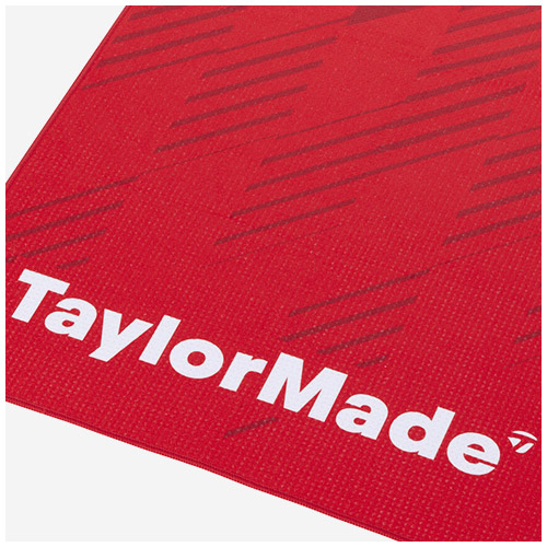 超細纖維高爾夫球巾展現了大膽的宣言。白色的 TaylorMade 和 ORBR 標誌位於兩端,背景是紅色格紋圖案,讓人聯想到一個詞:速度。