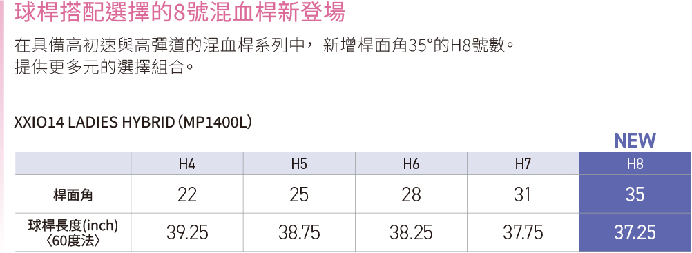 | 揮桿重量 | XXIO MP1400L碳纖維桿身 | B8 | ||||