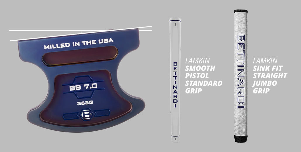 搭配巡迴賽等級的刷紋鎳桿身以增強手感與控制力,並由具有海軍藍與灰色細節的碳纖維風格磁吸式桿頭套提供保護,每一個細節都體現了 Bettinardi 對性能與工藝的承諾。