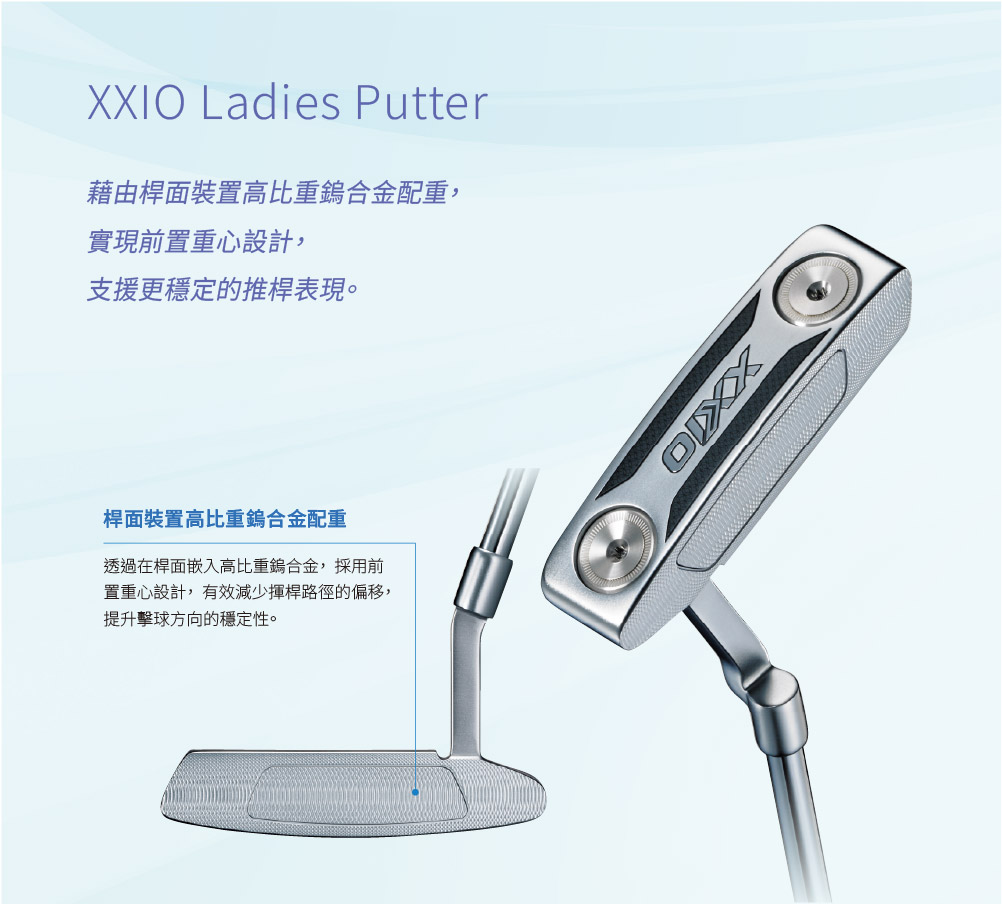 ● 桿頭材質 本體: SUS630 桿面: 高比重鎢合金 配重塊: SUS303