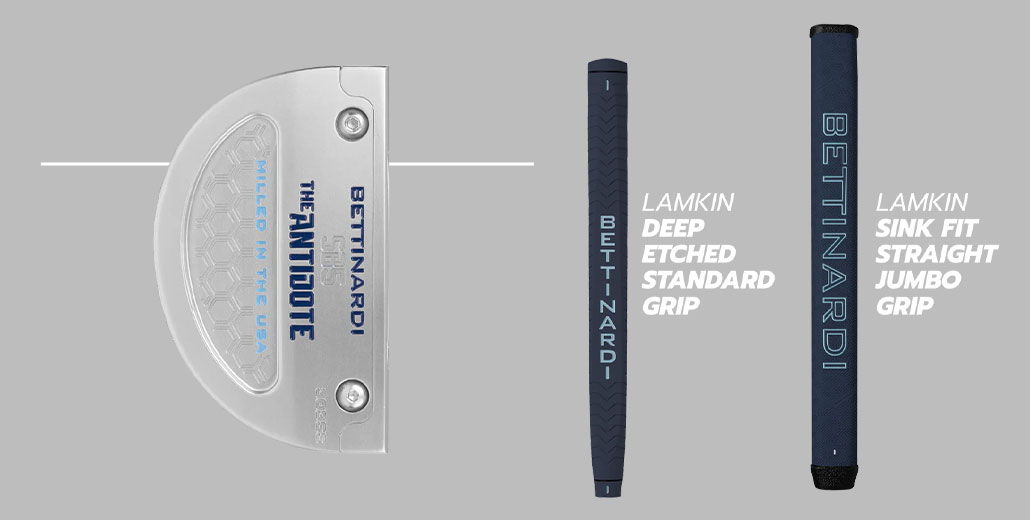 這款 Antidote 系列推桿配備了 Chrome Tour Grade 專業級桿身、專屬匹配的 Lamkin 或 Winn 握把,以及 Antidote 系列磁吸式桿頭套。