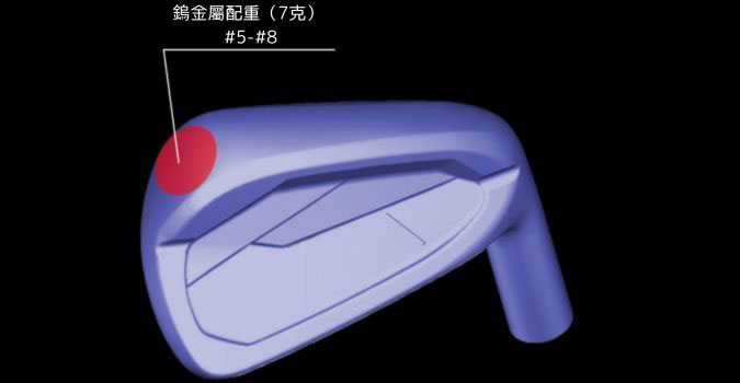 與之前的型號相比,增加了凹背處的厚度,實現了職業選手青睞的紮實打感。有效減少長草區擊球(擊球點在桿面上部時)的距離損失。