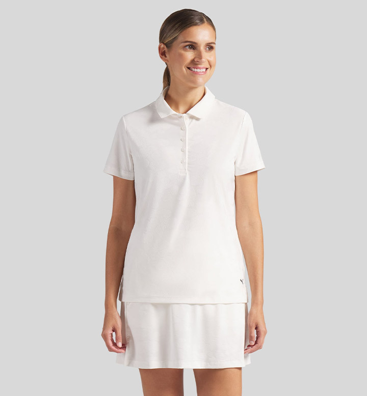 穿上這款蕾絲碎花 Polo 衫,為球道注入樂趣、風格與功能性。雙面提花織法帶來具質感且浪漫的風格,結合 dryCELL 吸濕排汗技術與四向伸縮彈性,絕不限制您的揮桿動作。