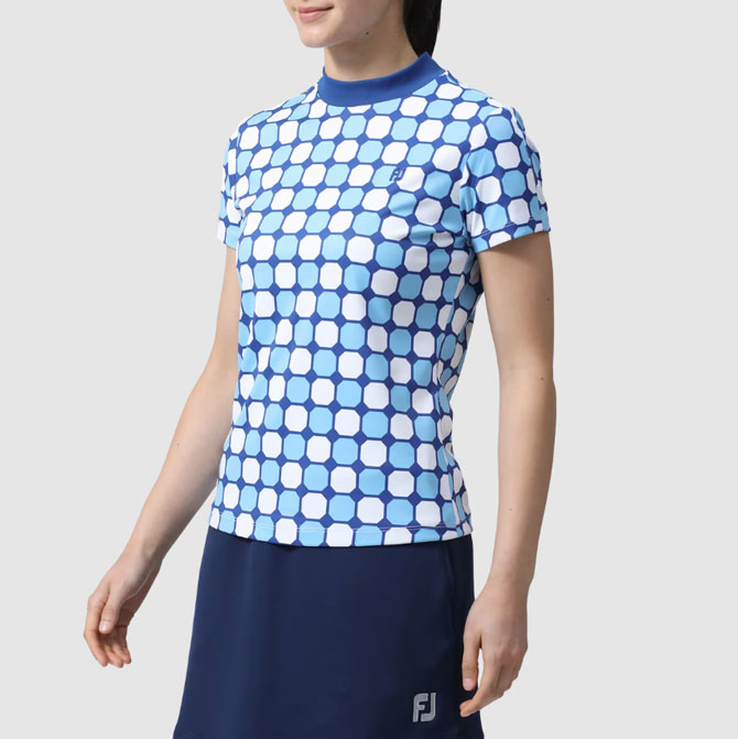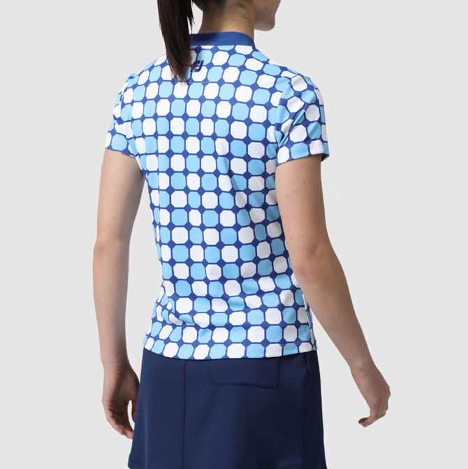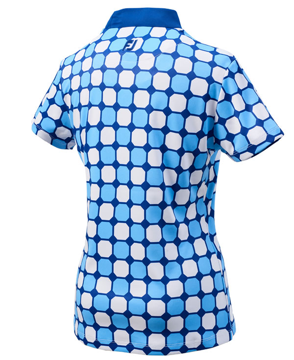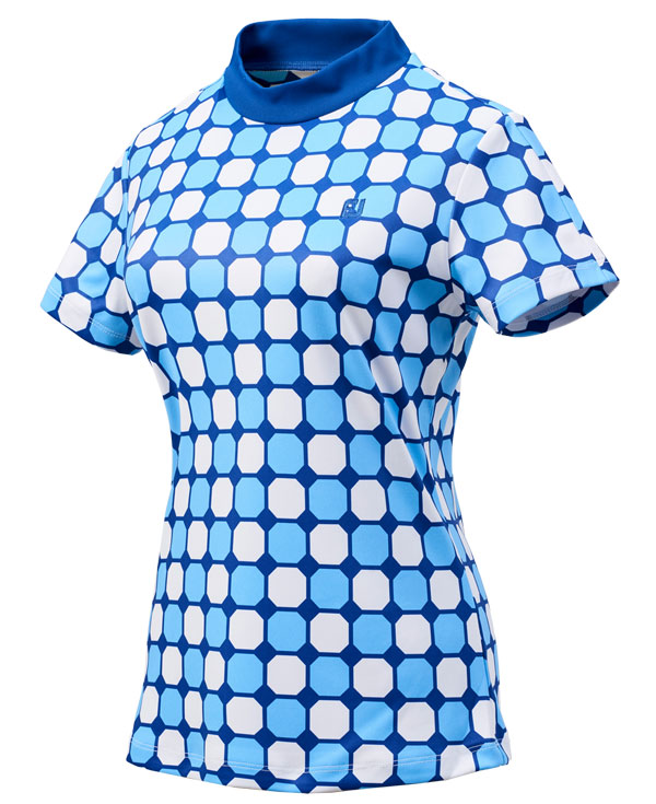 短袖小高領,材質表面光滑,觸感舒適。 多彩的八邊形圖案印花是球場上看起來很棒的單品。
