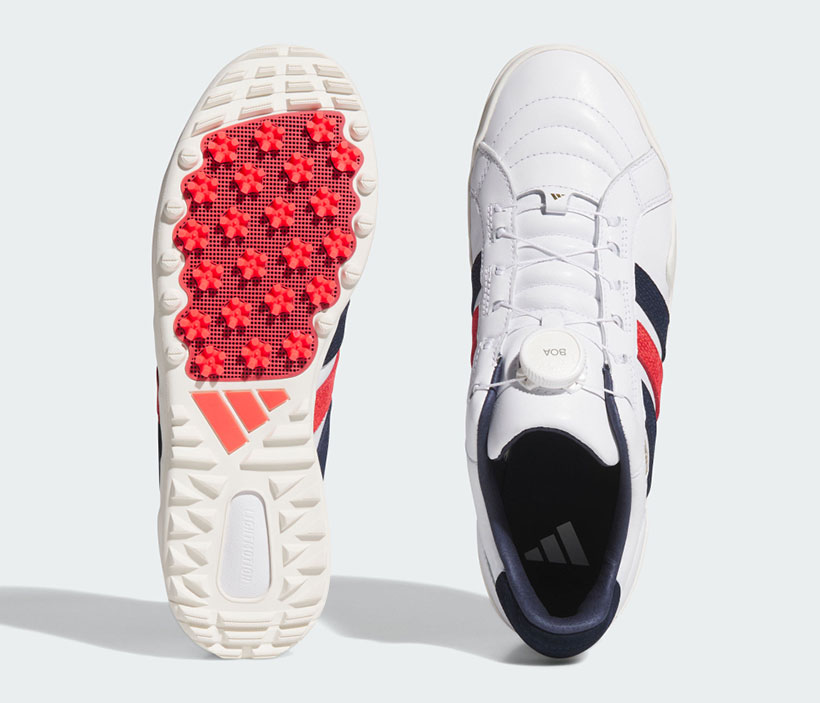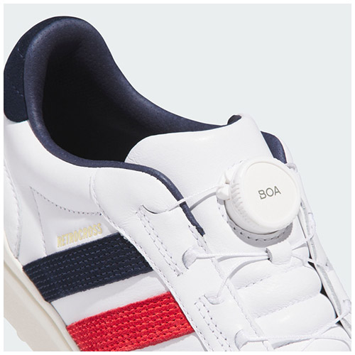 採用皮革鞋面材質,經典耐穿、舒適貼合。BOA® Fit 系統讓你輕鬆快速地調整鞋帶,打造專屬於你的貼合感,在揮桿過程中更加穩固。