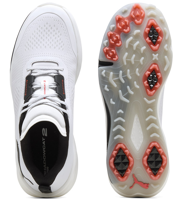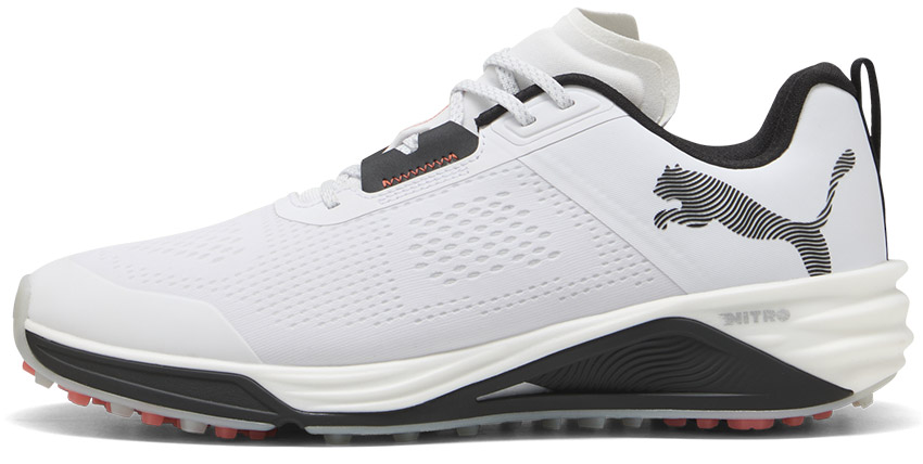 穿上 Shadowcat NITRO™ 高爾夫球鞋,在球場上體驗爆發性的力量。這款無釘設計球鞋旨在讓您在每一局比賽中都保持巔峰狀態。配備防水網布鞋面,即使天空轉陰,也能確保雙腳乾爽。