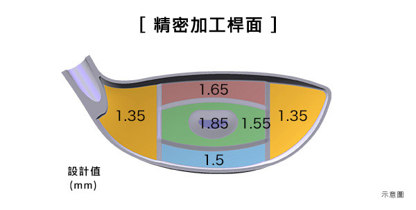 中間厚・週邊薄的桿面設計,讓超越規則限制的高反彈・扁平化桿面得以實現。
